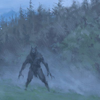 Saliendo de la oscuridad venía un hombre. Más bien, algo que parecía ser un hombre. Se acercaba lentamente, con los ojos de color rojo y colmillos enormes. En las manos tenía garras, como las de un animal. Tenía una expresión seria y las gotas de sangre caían de sus dedos, mientras la luna llena de esa noche resplandecía sobre el bosque.
